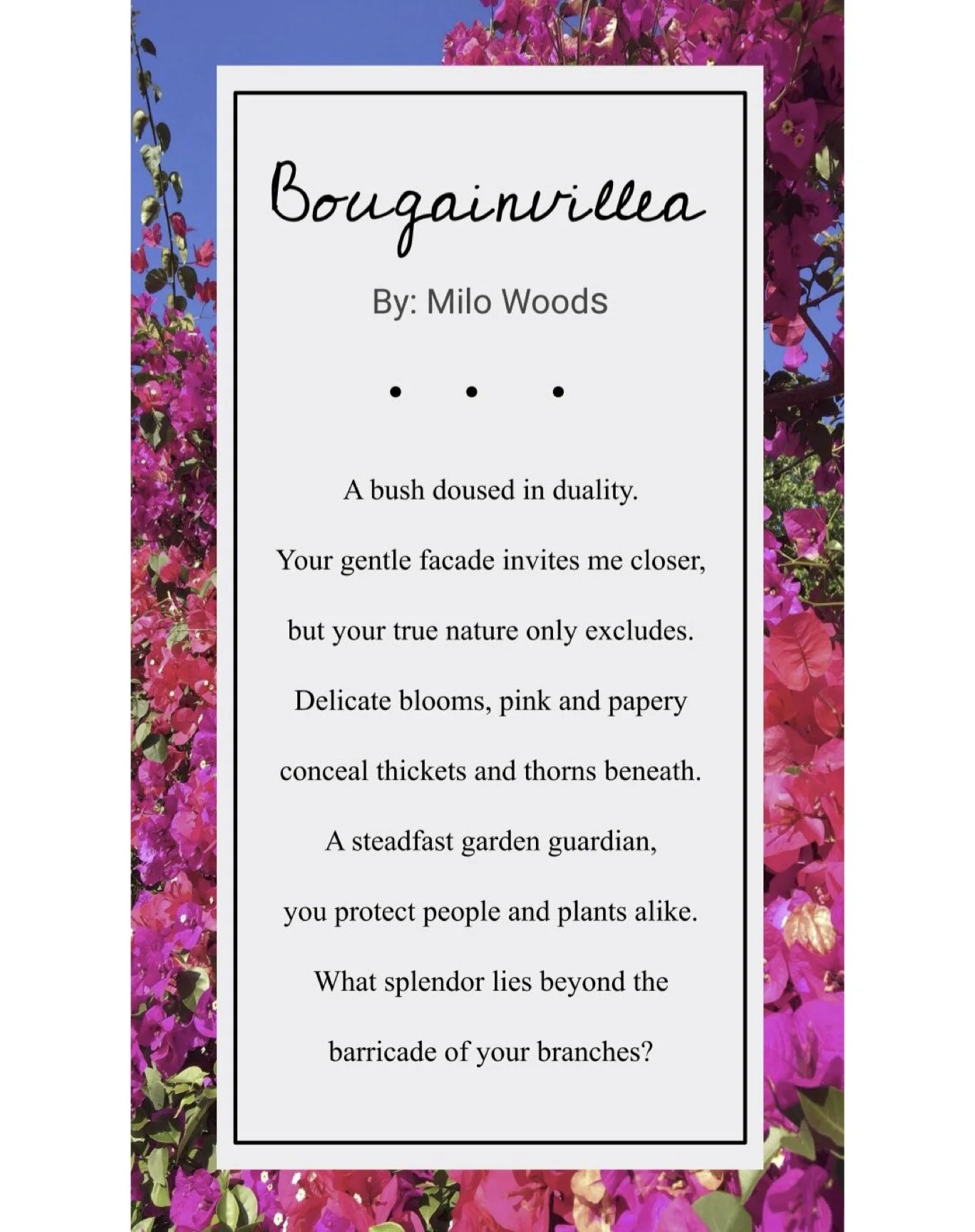 This zine was created by the 2020-2021 MOCA Teens as a culmination of our collaboration with Jenny Yurshansky. In it, we explored the plants in our local areas: their lives, stories, families, species, and more. All of the art made for this zine was inspired by workshops made for Yurshansky’s Blacklisted: A Planted Allegory project. Blacklisted: A Planted Allegory examines plants that are deemed “non-native” to their environments as a metaphor for the ways that immigrants are disenfranchised within the United States. While learning from Jenny, we made weavings with plants from our environments, wrote in the perspective of or in conversation with plants that matter to us, and had conversations about the relevance and meaning of her project. Jenny uses these plants as a tool to connect with her audience and start conversations about issues of discrimination and bias in the U.S. With this zine, we hope to include the greater community in our learning and art. We want to highlight the importance of artists using their voices to speak out about injustice. Inside you will find the art and writings of MOCA Teens, as well as activities for you to try yourself. We hope you enjoy!
