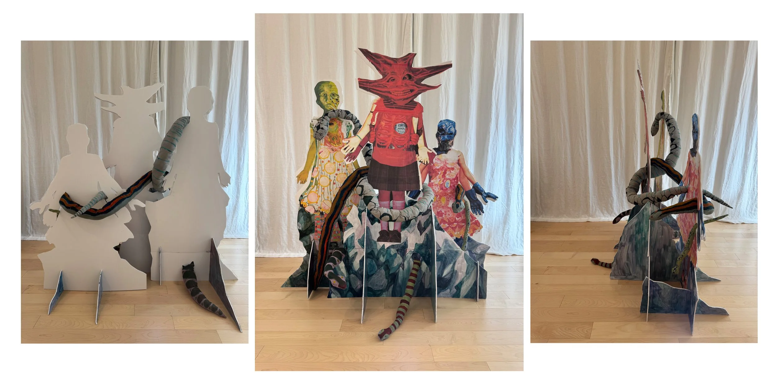 Inkjet printed images and acrylic paint on foam core, acrylic paint on fabric