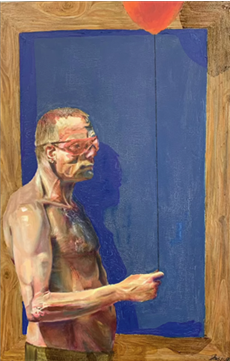 In this piece, I explore the notion of a universal human condition: one that is transcendent of time, place, culture. Two vastly different worlds are depicted—21st century American teenagehood and 19th century East Asian Buddhism. Despite each figure embodying vastly different contexts, their expressions mirror each other. They are each subject to the same aspects of the human condition, and it is through these universal experiences that their environments are intertwined. Furthermore, the stretching of the subjects and placement of pattern moves the viewer's eye vertically across the canvas; ‘transcending’ each painting’s cultural minutiae and bringing light to a greater duality that is deeply intrinsic to humanity.